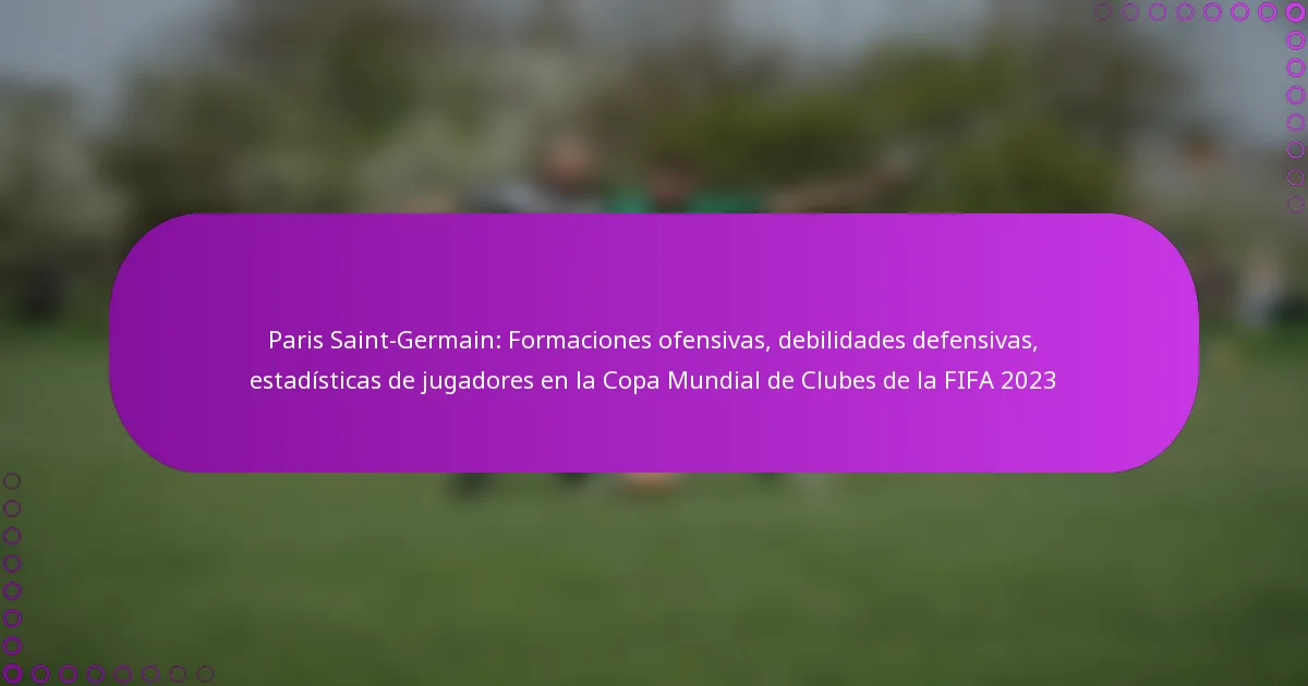 Las estadísticas de los jugadores de la Copa Mundial de Clubes de la FIFA 2023 revelan conocimientos cruciales sobre el rendimiento del Paris Saint-Germain, destacando tanto su potencia ofensiva como sus vulnerabilidades defensivas. Analizar estas métricas ayuda a entender cómo las contribuciones individuales moldean los resultados de los partidos y el éxito general del equipo.